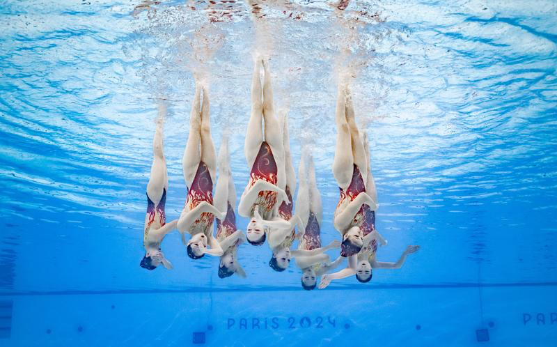 5日晚,花样游泳项目比赛在巴黎水上运动中心拉开大幕,在集体技术自选比赛中,压轴出场的中国队以313 5538的高分排名第一。中国队演绎的主
