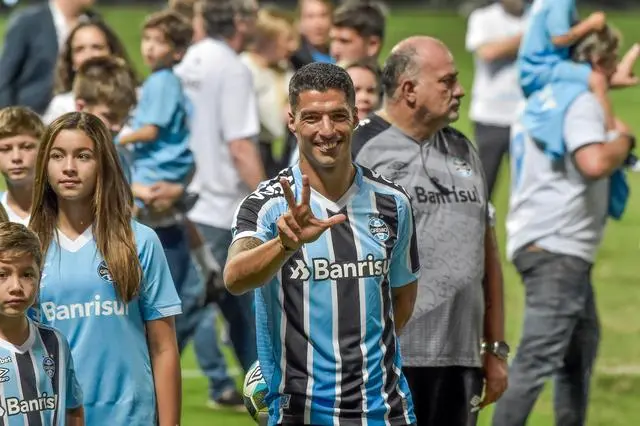 乌拉圭足球运动员苏亚雷斯4日参加了加盟巴西格雷米奥俱乐部后的首次新闻发布会,他认为加盟格雷米奥是其职业生涯最大的挑战之一。 苏亚