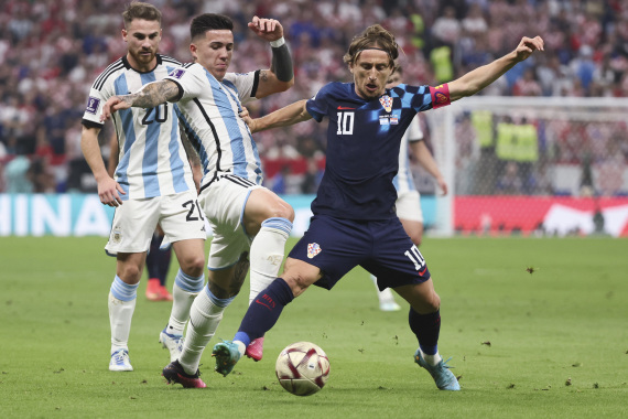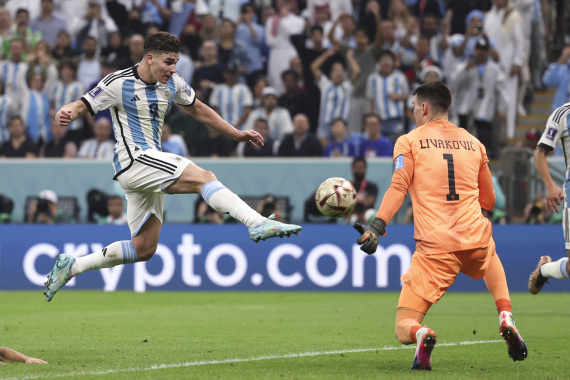 冲刺,冲刺,不停地冲刺。阿尔瓦雷斯用他不停歇的脚步,冲垮了沉稳老练的克罗地亚队。第34分钟,高速前插反越位成功,突入禁区制造点球;第