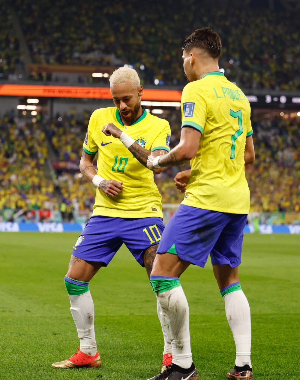 这是一场早早就失去悬念的比赛。每进一个球就换一支舞,巴西队在前40分钟内就跳了四回,把974球场变成了桑巴舞的大舞台。 在5日的卡塔尔