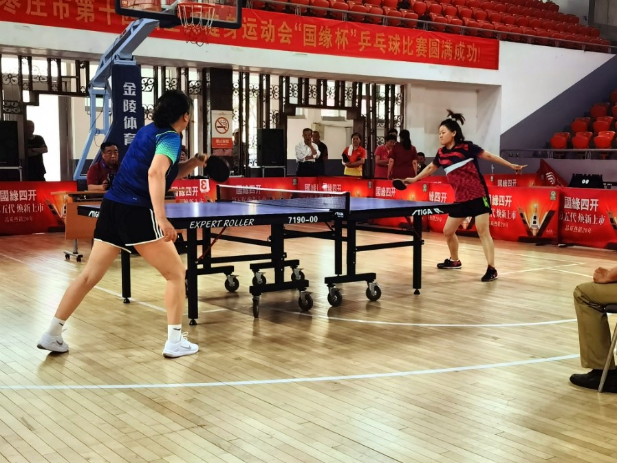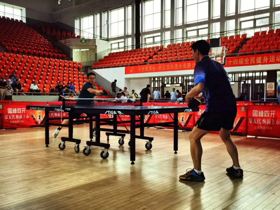 5月29日,枣庄市第十四届全民健身运动会“国缘杯”乒乓球比赛在市中区枣庄体育馆拉开帷幕。