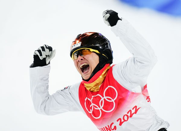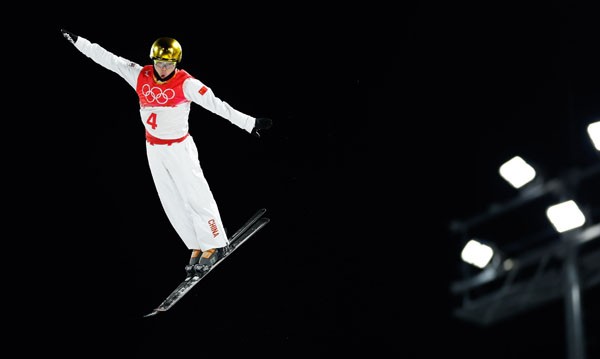 2月16日,在自由式滑雪男子空中技巧决赛中,中国选手齐广璞做出高难度动作,以129分的成绩,夺得中国队在本届冬奥会上的第七枚金牌,也是继2006年都灵冬奥会韩晓鹏摘得首金后,中国空中技巧男队再次夺得该项目金牌。
