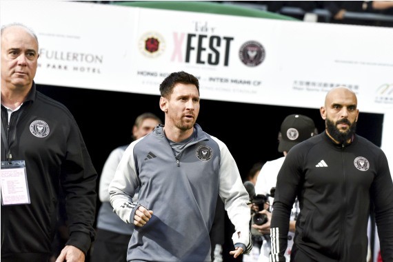 2024-02-04来中国香港参加表演赛的迈阿密国际俱乐部3日在香港大球场举行公开训练,阿根廷球星梅西现身并参加了部分合练。在此前进行的一场热身赛中,