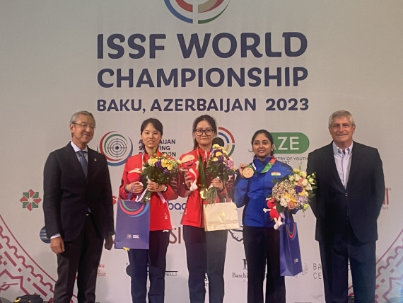 国际射击运动联合会消息,19日在阿塞拜疆巴库举行的射击世锦赛上,中国队夺得女子10米气步枪个人金牌、银牌和团体银牌,以及男子10米气步枪