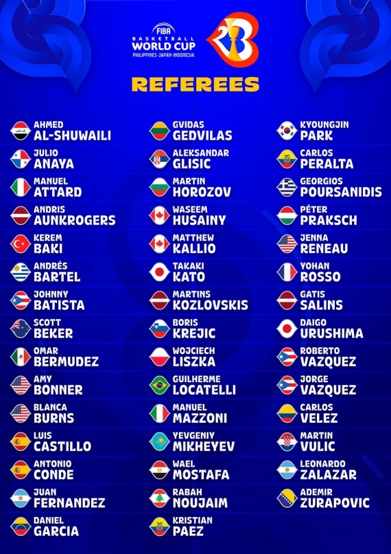 国际篮联官网在瑞士当地时间16日公布了即将在2023年篮球世界杯上执裁的44名裁判人选,值得关注的是,3名女裁判出现在名单中,这将是篮球世